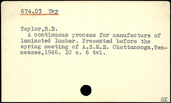 A continuous process for manufacture of laminated lumber. Presented before the spring meeting of A.S.M.E.