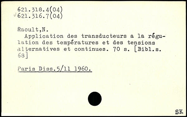 Application des transducteurs a la régulation des températures et des tensions alternatives et continues. 'JO s.
