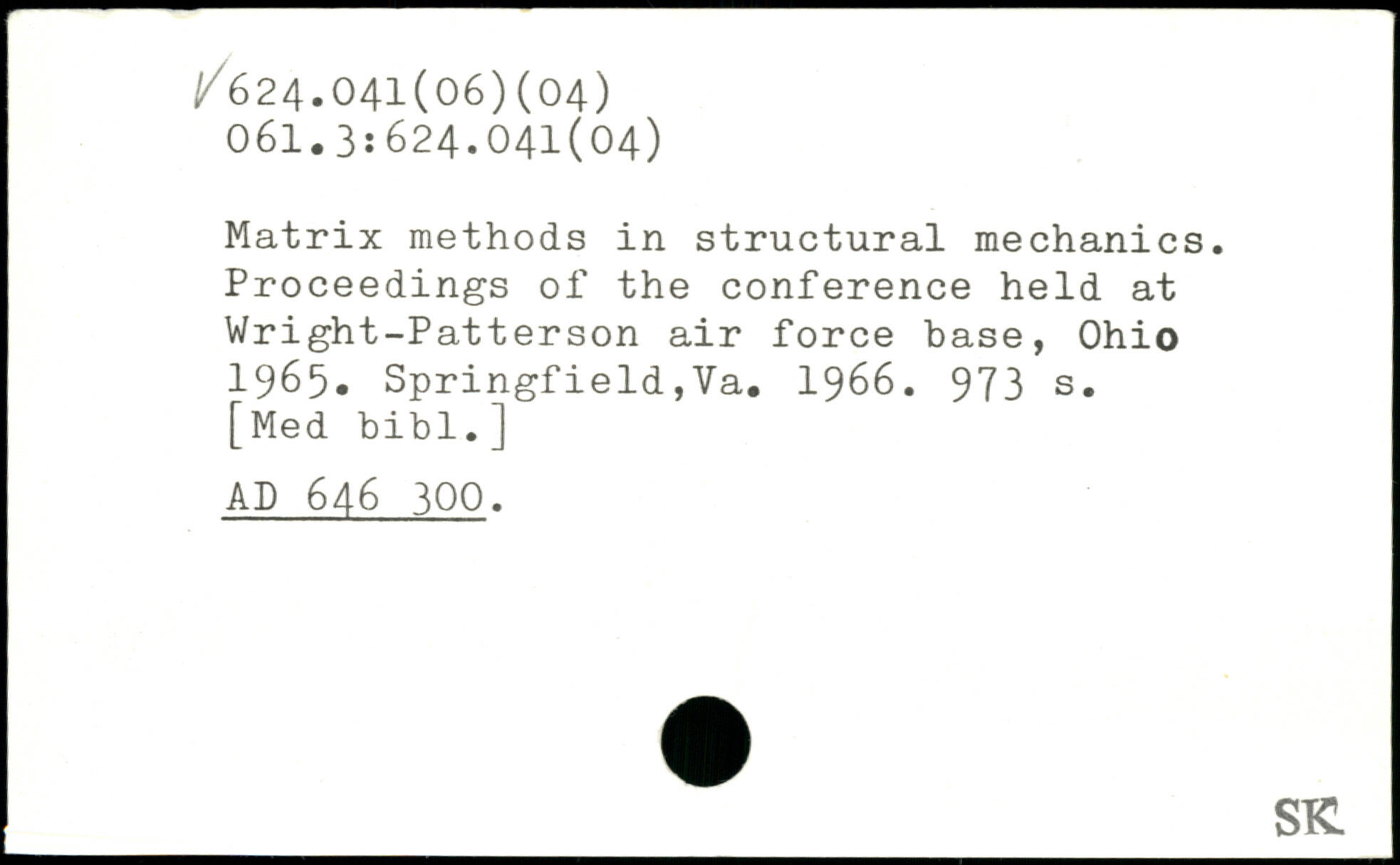 Matrix methods in structural mechanics. Proceedings of the conference held at Wright-Patterson air force base, Ohio 1965. Springfield,Va. 1966.