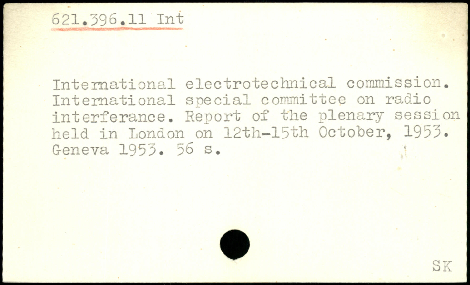 Intemationa.1 electrotechnical commission. International special committee on radio interferance. Report of the plenary session held in London on 12th-15th October, 1953.