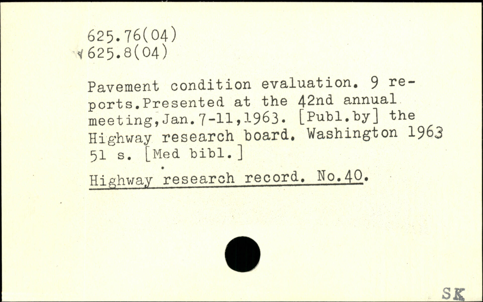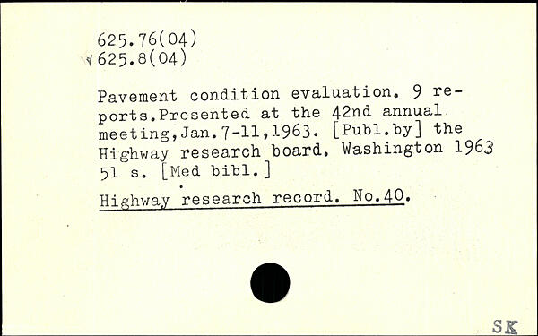 Pavement condition evaluation, 9 reports,Presented at the 42nd annual meeting,Jan.7~11,^963.