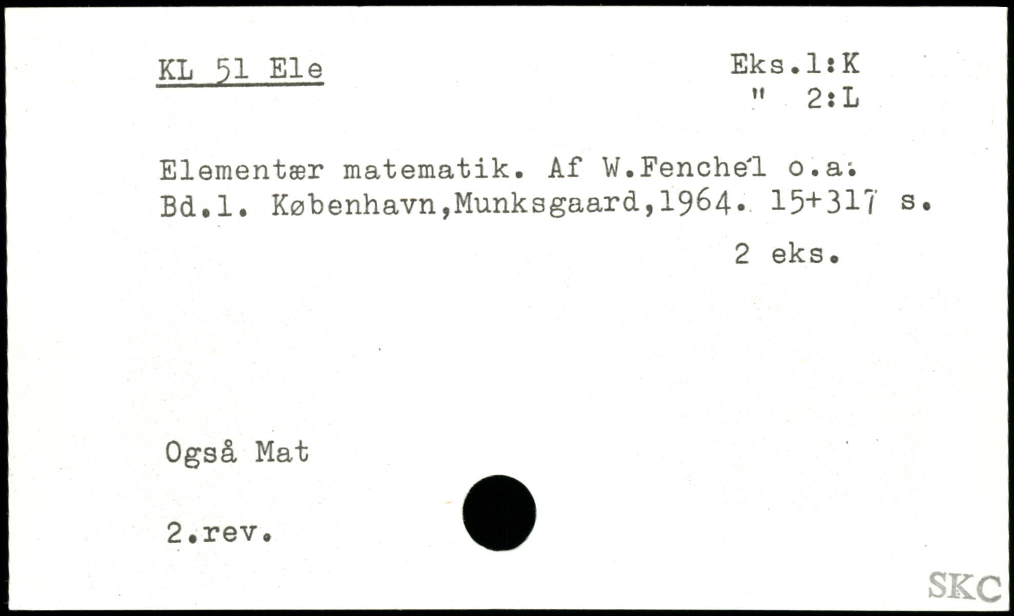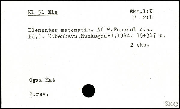 Elementær matematik. Af W.Fenche'l o.a; Bd.l.