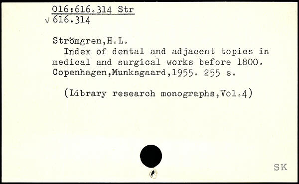 Index of dental and adjacent topics in medical and surgical works before 1800.