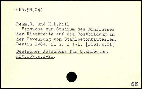 Versuche zum Studium des Einflusses der Rissbreite auf die Rostbildung an der Bewehrung von Stahlbetonbauteilen.