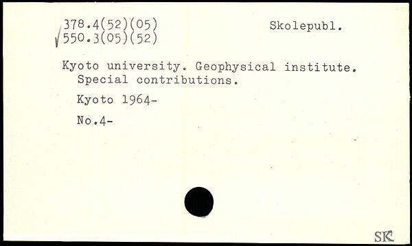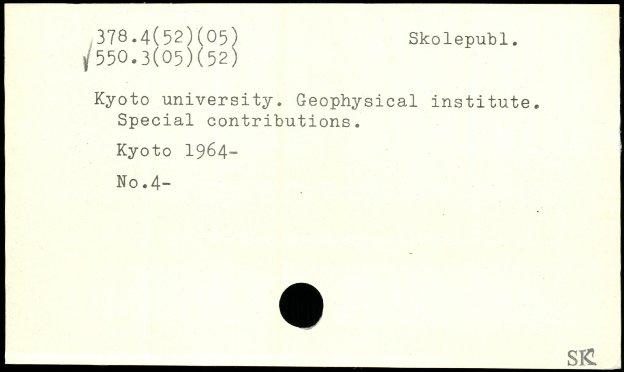Kyoto university. Geophysical institute. Special contributions. Kyoto 1964- No.4-