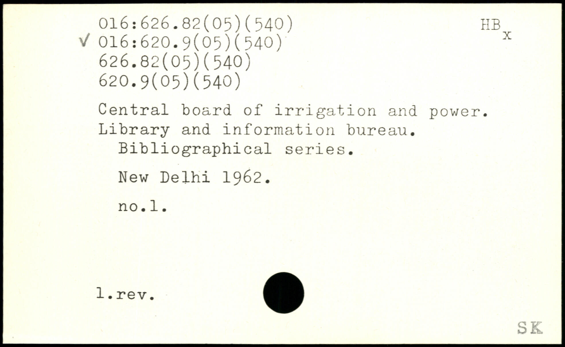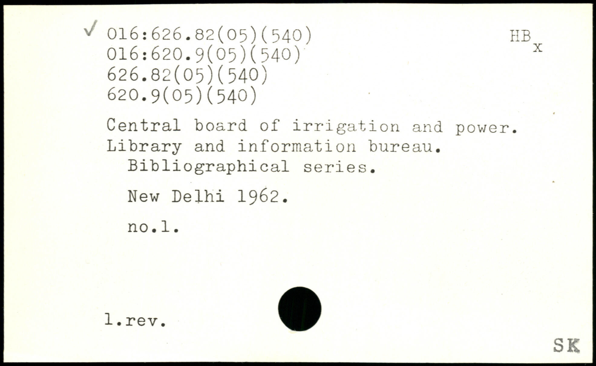 Central board of irrigation and power. Library and information bureau. Bibliographical series. New Delhi 1962. no. 1.