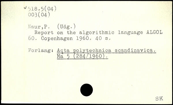 Naur,P, (Udg.) Report on the algorithmic language ALGOL 60.