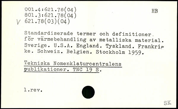 Standardiserade termer och definitioner, för värmebehandling av metalliska material. Sverige. U.S.A. England. Tyskland. Frankri#-ke. Schweiz. Belgien.