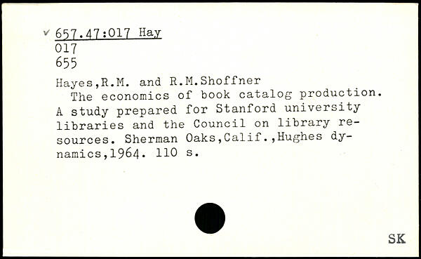The economics of book catalog production. A study prepared for Stanford university libraries and the Council on library resources.