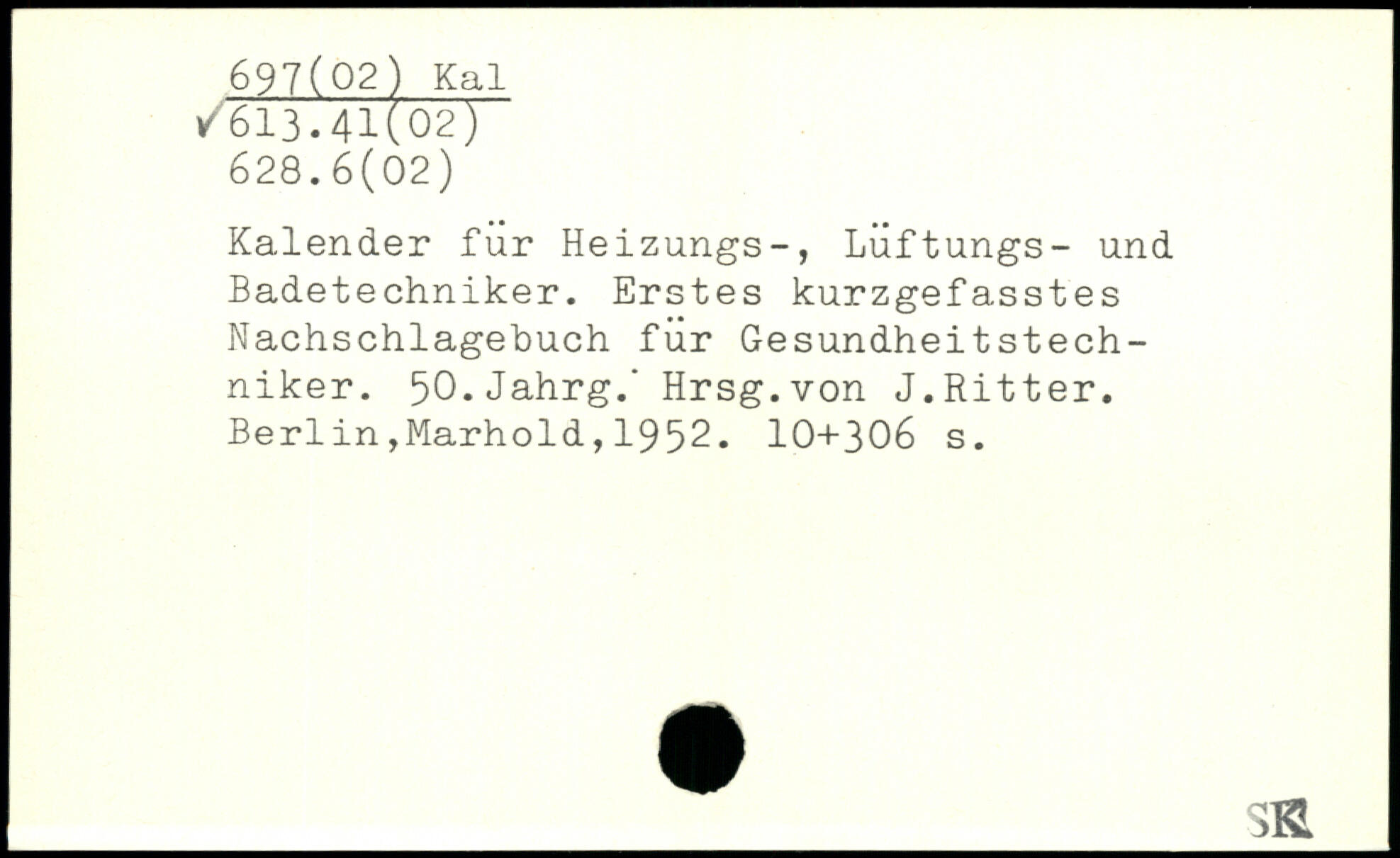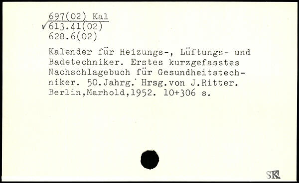 Kalender für Heizungs-, Luftungs- und Badetechniker. Erstes kurzgefasstes Nachschlagebuch für Gesundheitstechniker. 50.Jahrg.' Hrsg.von J.Ritter.