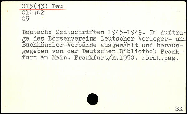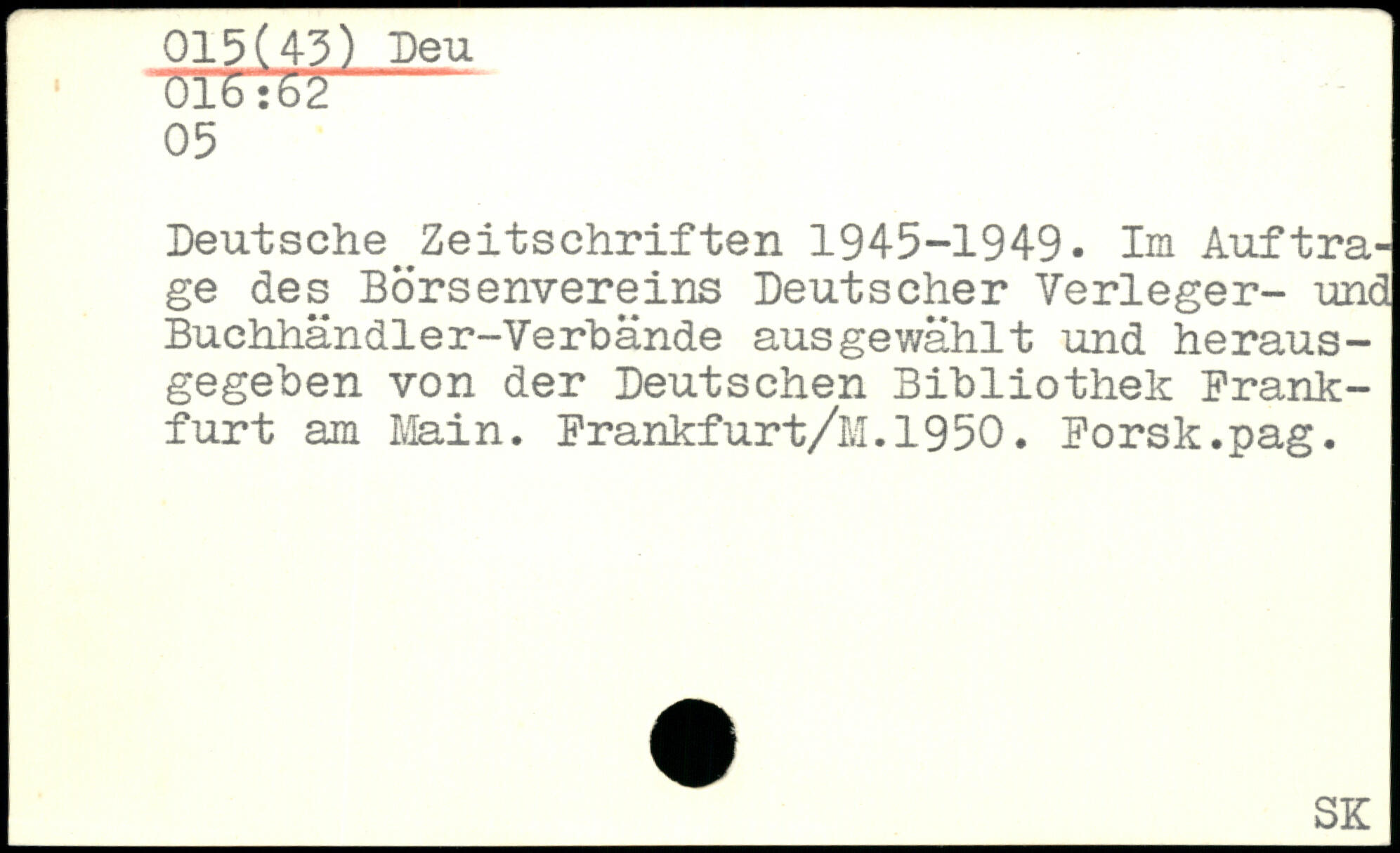 Deutsche^ Zeitschriften 1945-1949. Im Aufträge des Börsenvereins Deutscher Verleger- und Buchhändler-Verbände ausgewählt und herausgegeben von der Deutschen Bibliothek Frankfurt am Main. Frankfurt/M.1950. Forsk.pag.