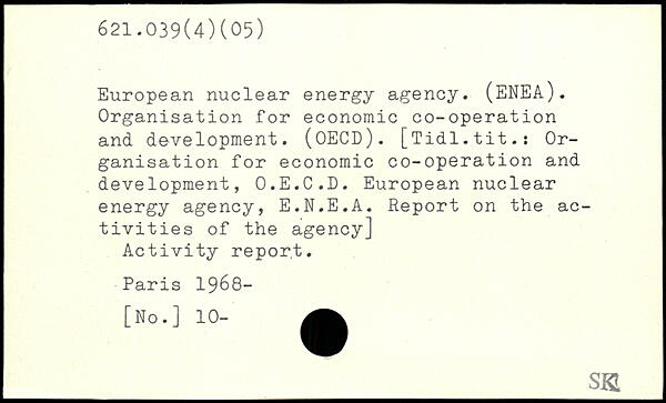 European nuclear energy agency. (ENEA). Organisation for economic co-operation and development. (OECD). [Tidl.tit.: Organisation for economic co-operation and development, O.E.C.D. European nuclear energy agency, E.N.E.A. Report on the activities of the agency] Activity report.