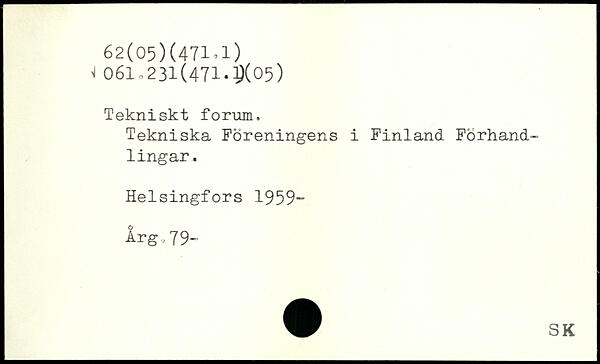 Tekniskt forum, Tekniska Föreningens i Finland Förhandlingar.
