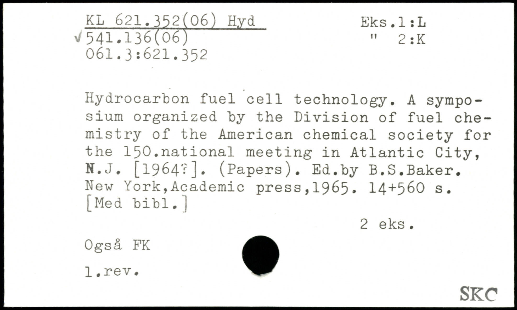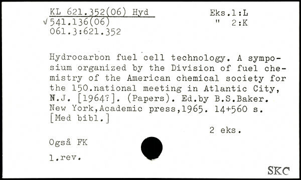 Hydrocarbon fuel cell technology. A symposium organized by the Division of fuel chemistry of the American chemical society for the 150.national meeting in Atlantic City, N.J. [19642]. (Papers). Ed.by B.S.Baker.