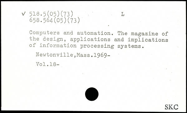 Computers and automation. The magazine of the design, applications and implications of information processing systems. Newtonville,Mass.1969-