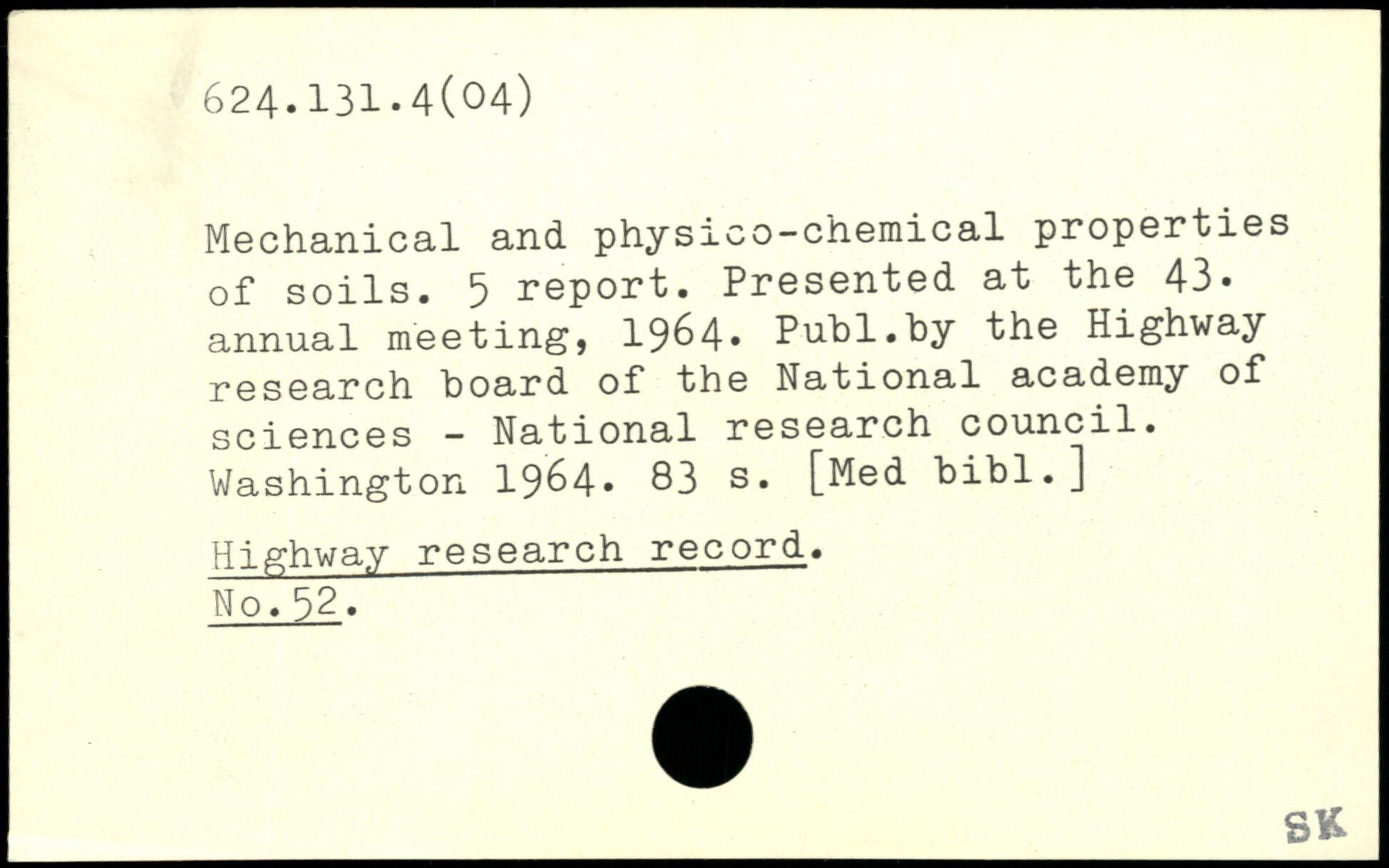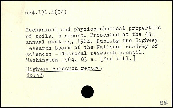 Mechanical and physico-chemical properties of soils. 5 report. Presented at the 43. annual meeting, 19^4