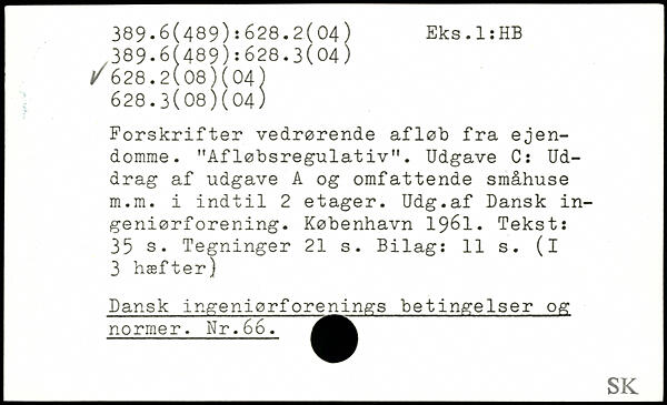 Forskrifter vedrørende afløb fra ejendomme. "Afløbsregulativ". Udgave C: Uddrag af udgave A og omfattende småhuse m.m. i indtil 2 etager. Udg.af Dansk ingeniørf orening.