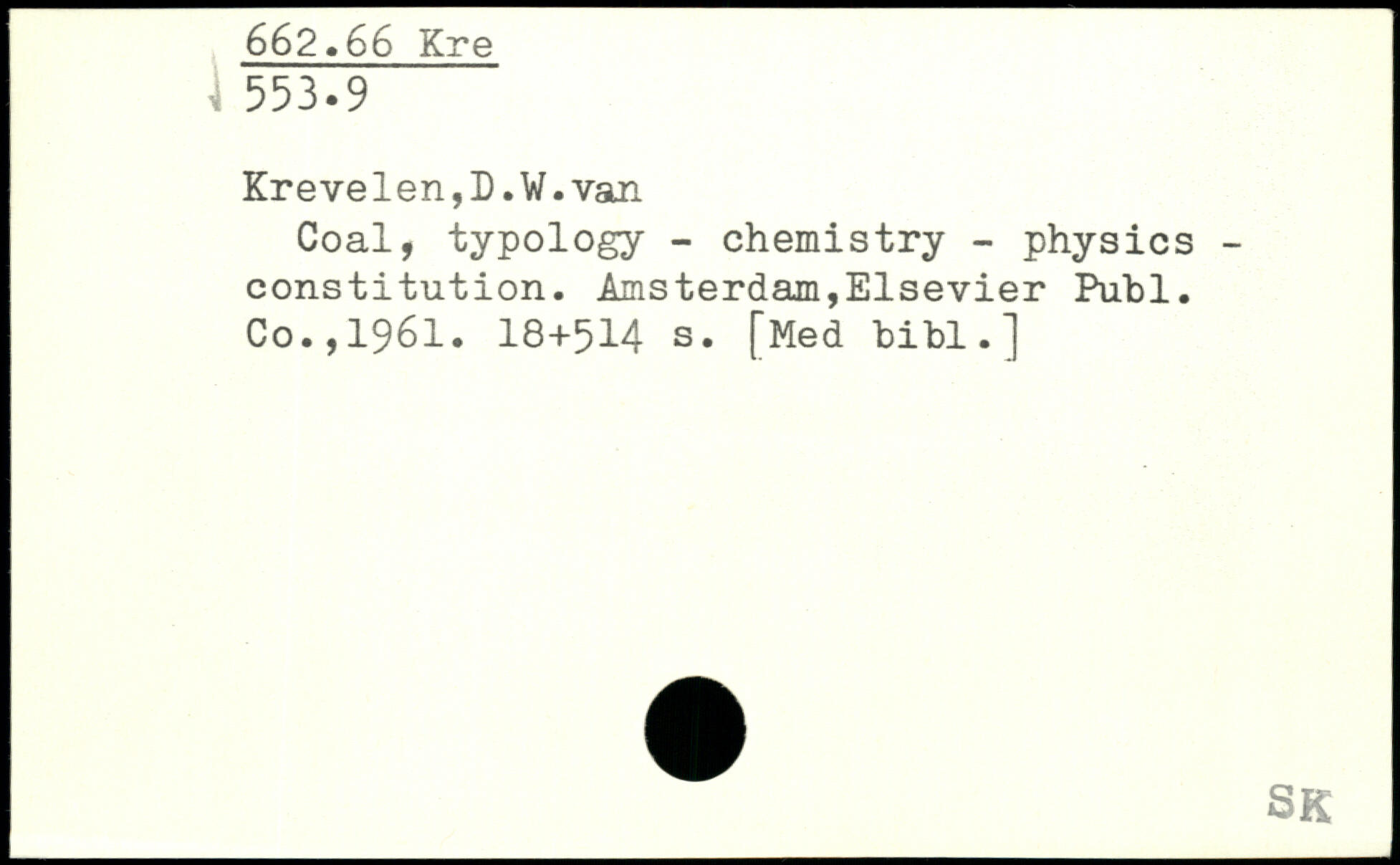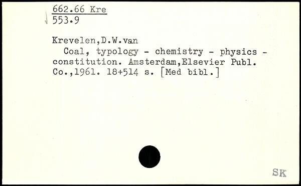 Coal, typology - chemistry - physics -constitution. Amsterdam,Elsevier Publ. Co.,1961.