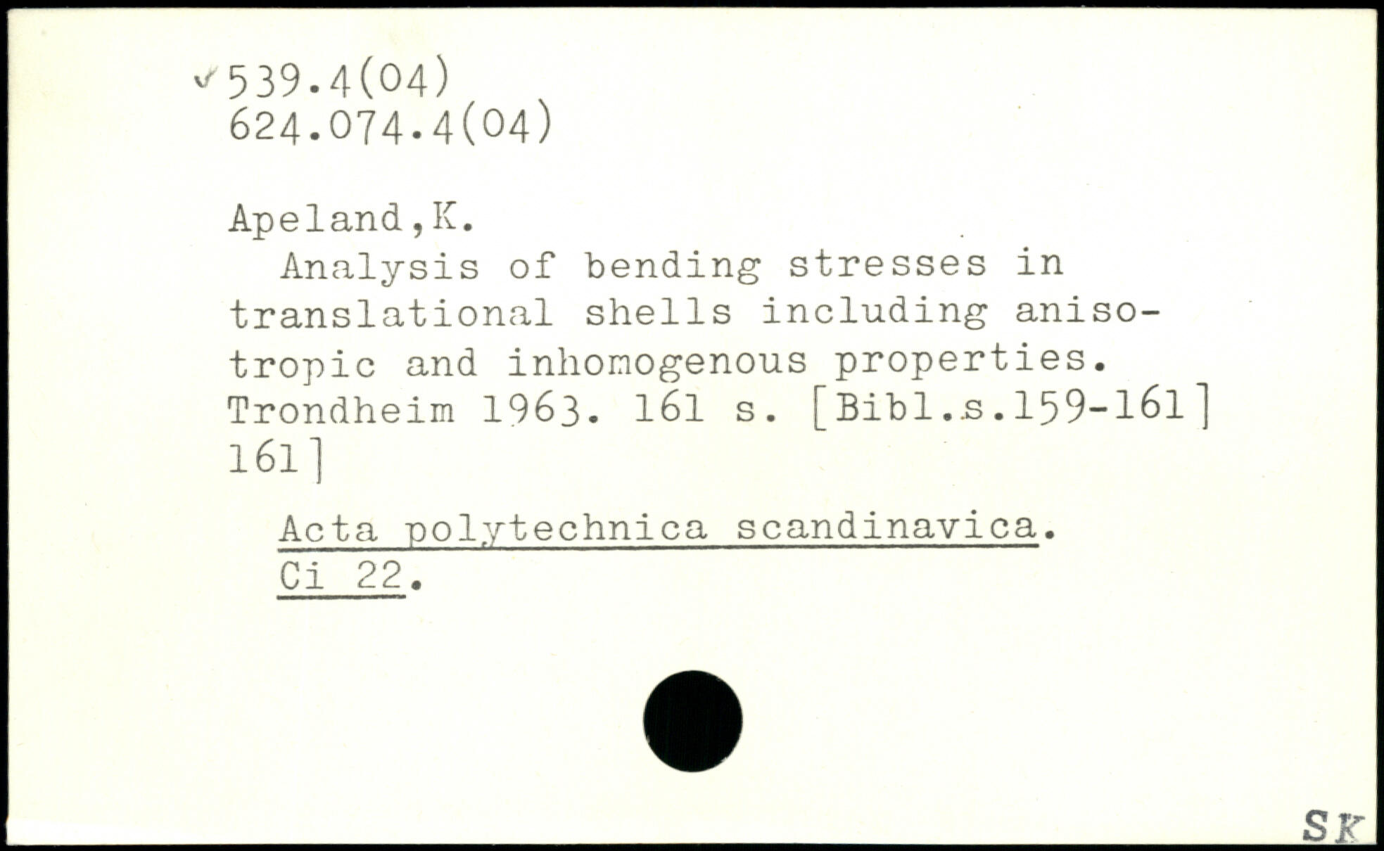 Analysis of bending stresses in translational shells including anisotropic and inhonogenous properties.