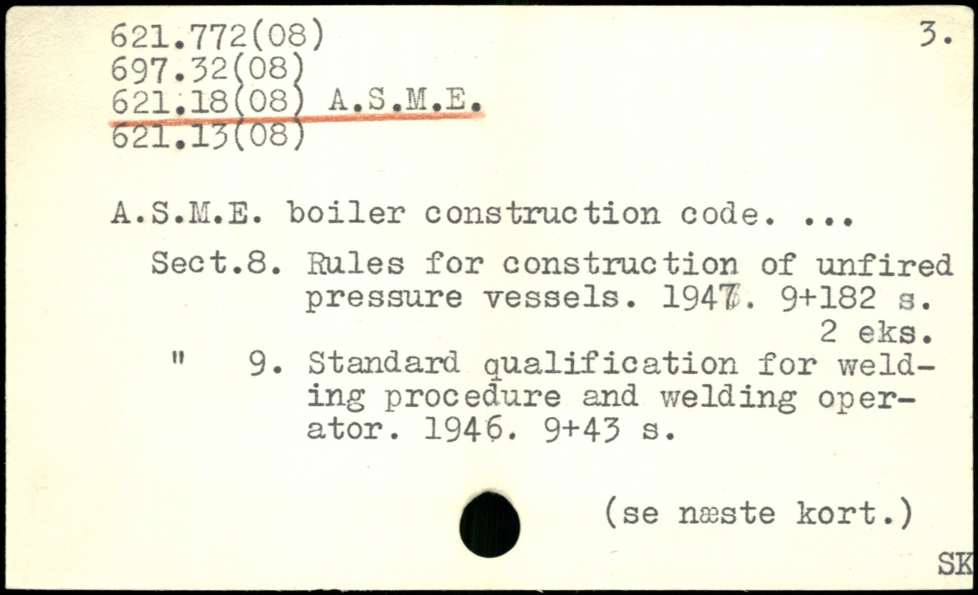 A.S.M.E. boiler construction code. ... Sect.8. Hules for construction of unfired pressure vessels. 194TL
