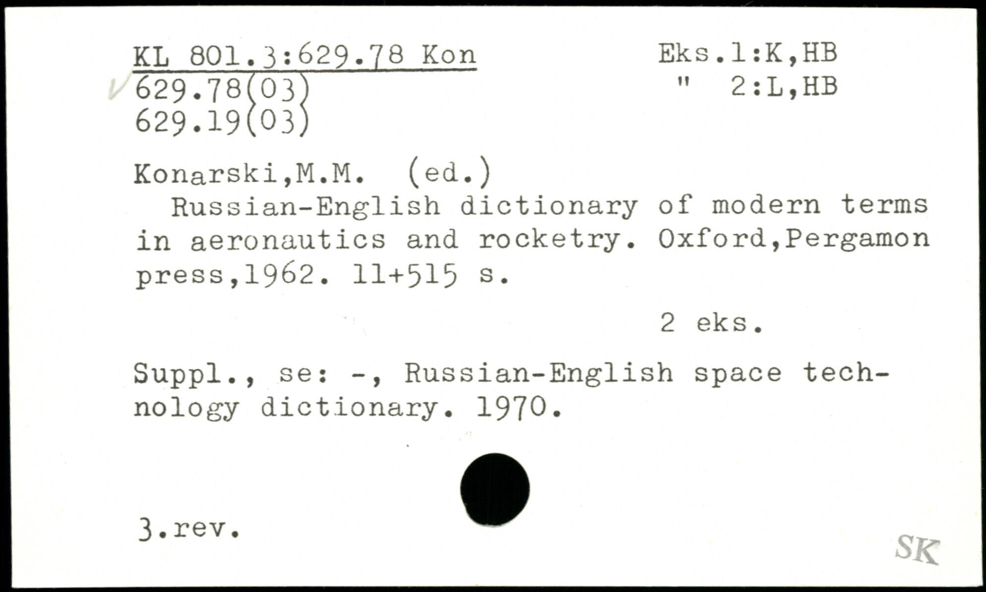 Russian-English dictionary of modern terms in aeronautics and rocketry.