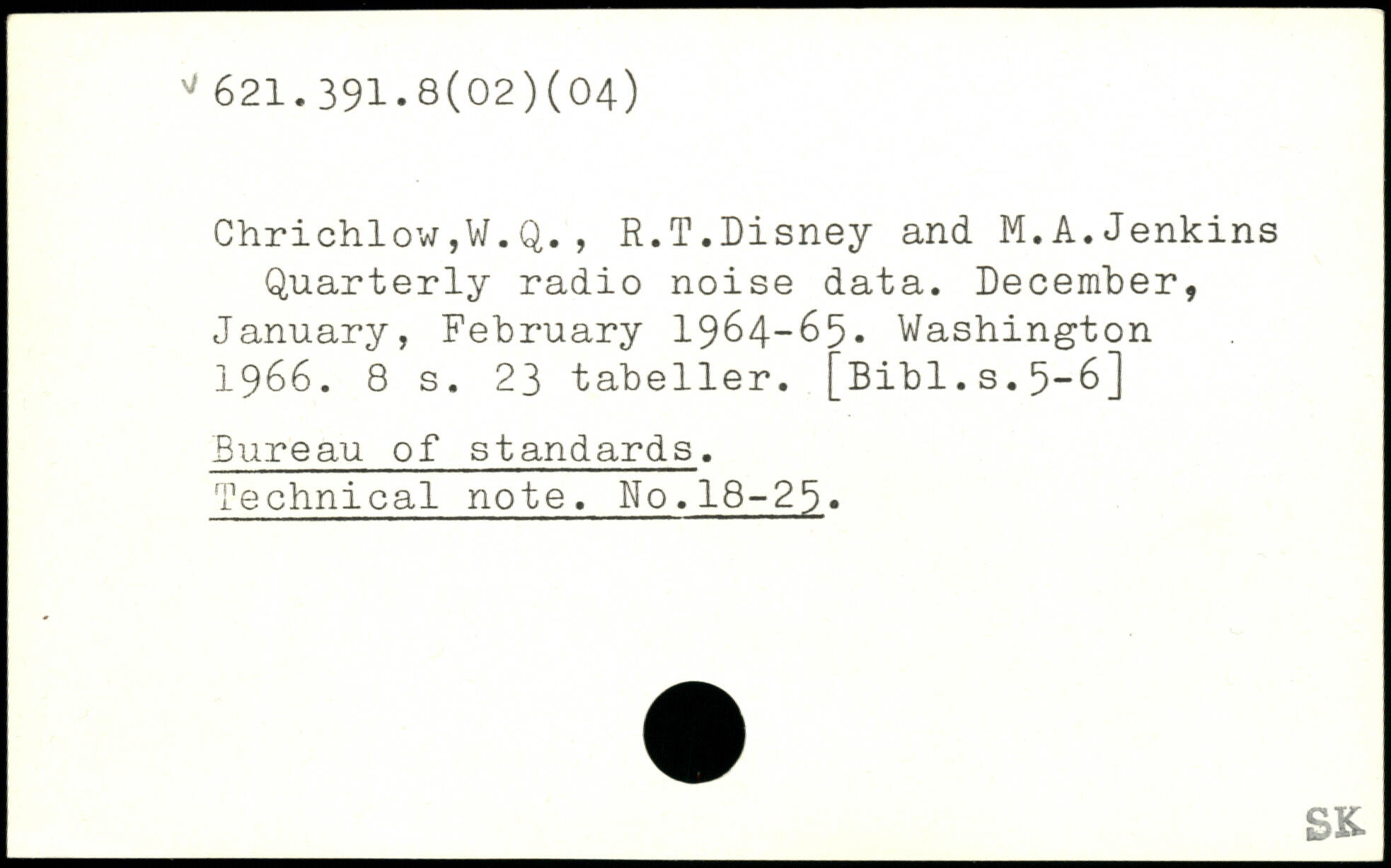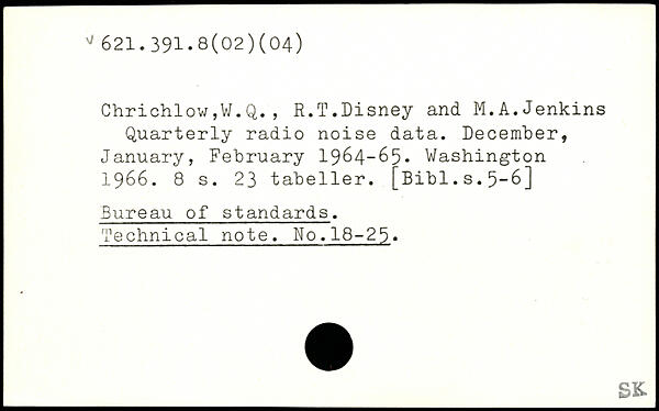 Chrichlow,W.Q. , R.T.Disney and M.A. Jenkins Quarterly radio noise data. December, January, February 1964-65.