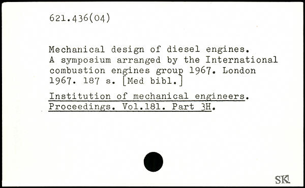 Mechanical design of diesel engines. A symposium arranged by the International combustion engines group 1967.