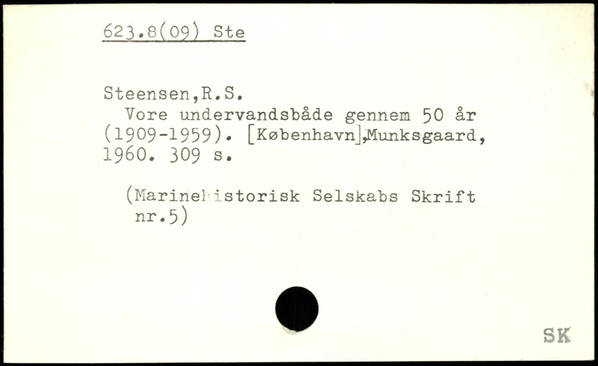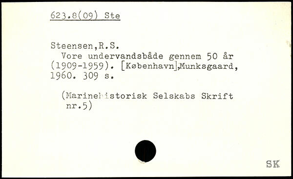 Vore undervandsbåde gennem 50 år (1909-1959 ). [KøbenhavnIjMunks-gaard, 1960.