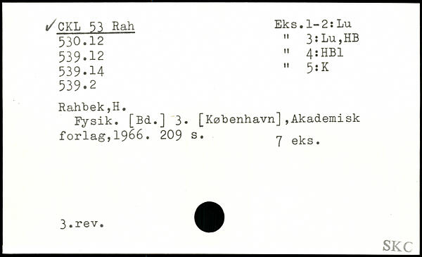 Fysik. [Bd.] 3. [København],Akademisk forlag,1966. 2O