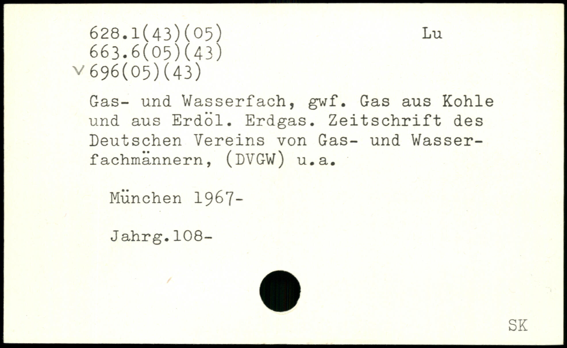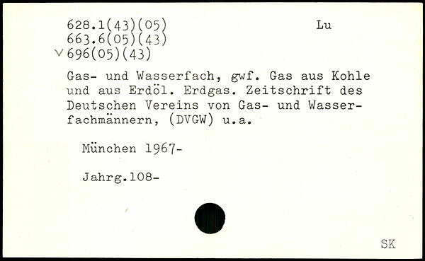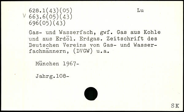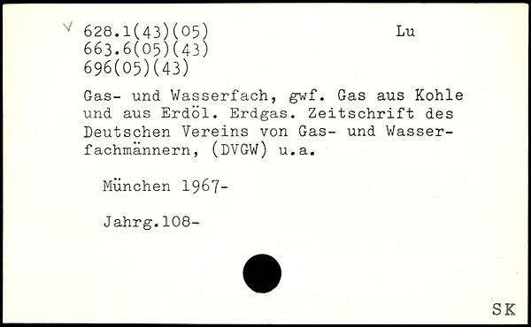 Gas- und Wasserfach, gwf. Gas aus Kohle und aus Erdöl. Erdgas. Zeitschrift des Deutschen Vereins von Gas- und Wasser-fachmannern, (DVGW) u.a.