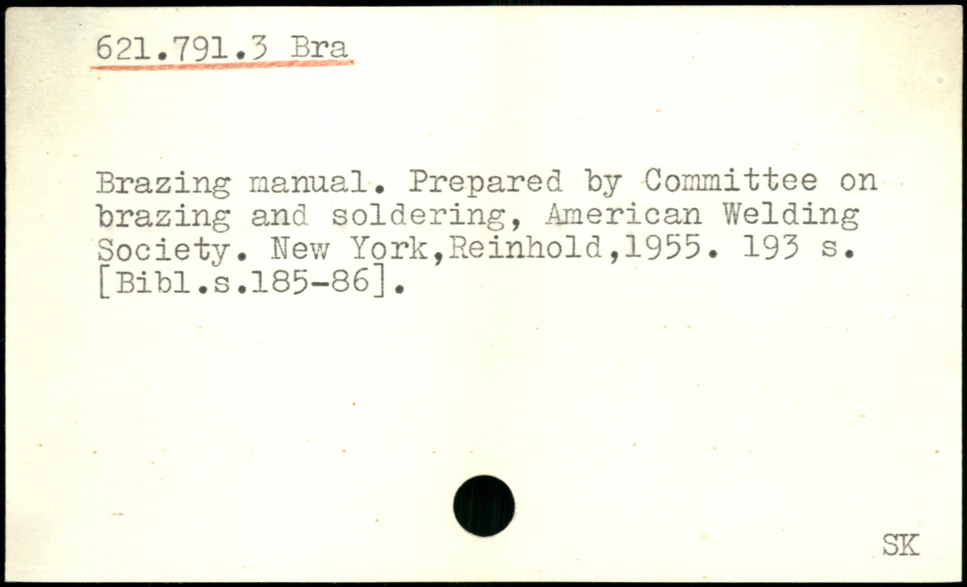 Brazing manual. Prepared by Committee on brazing and soldering, American Welding Society.