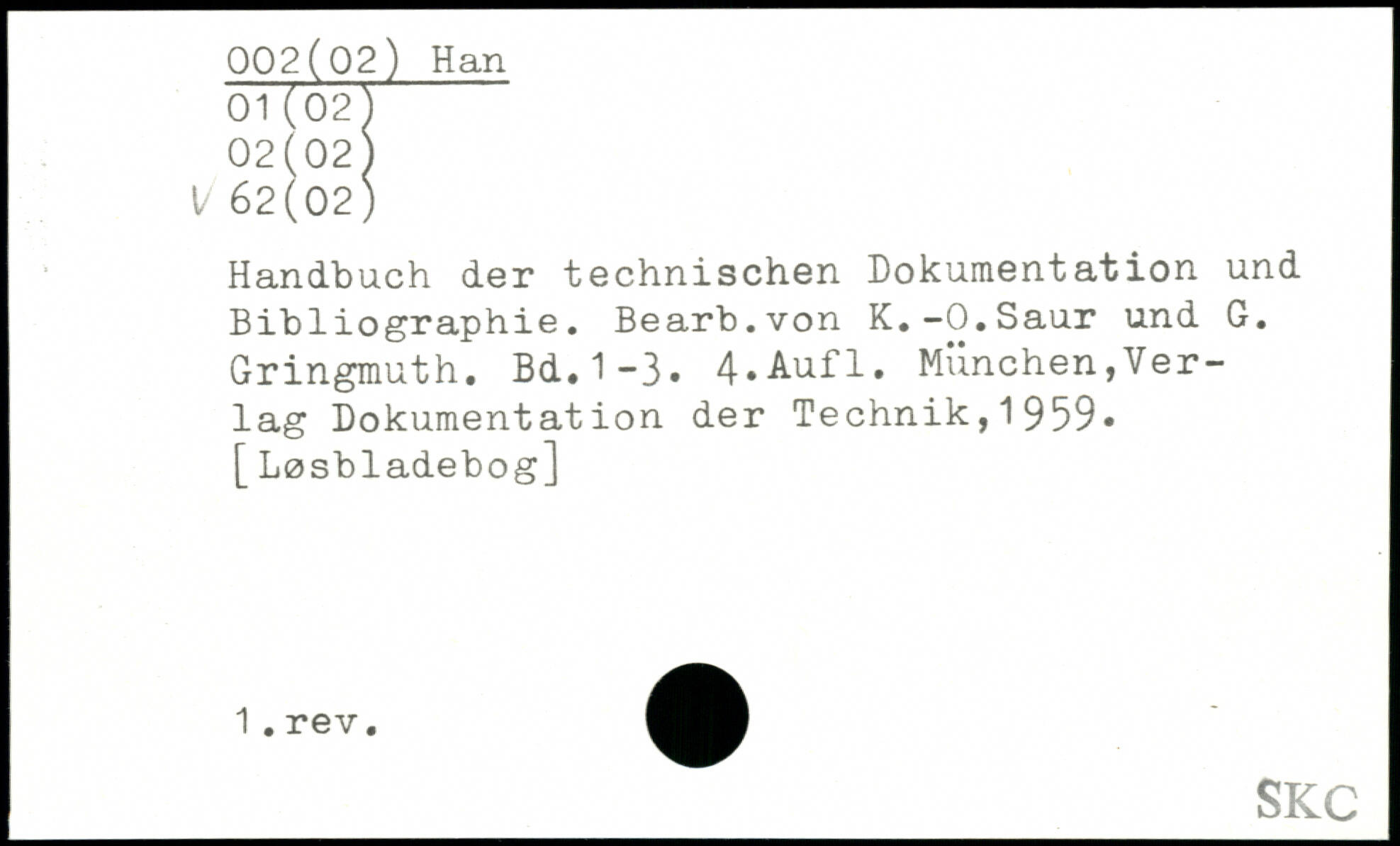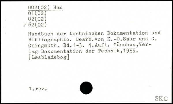 Handbuch der technischen Dokumentation und Bibliographie. Bearb.von K.-O.Saur und G. Gringmuth.