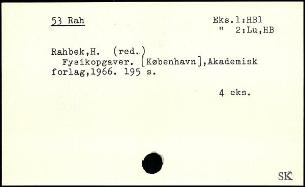 Fysikopgaver. [København],Akademisk forlag,1966.