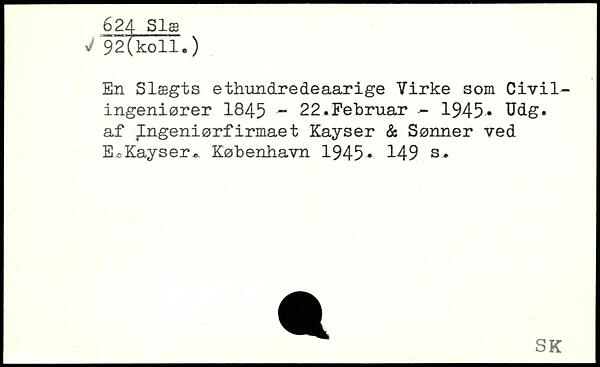 En Slægts ethundredeaarige Virke som Civilingeniører 1845 “ 22.Februar - 1945. Udg. af 4ngeniørfirmae^ Kayser & Sønner ved EcKayser..