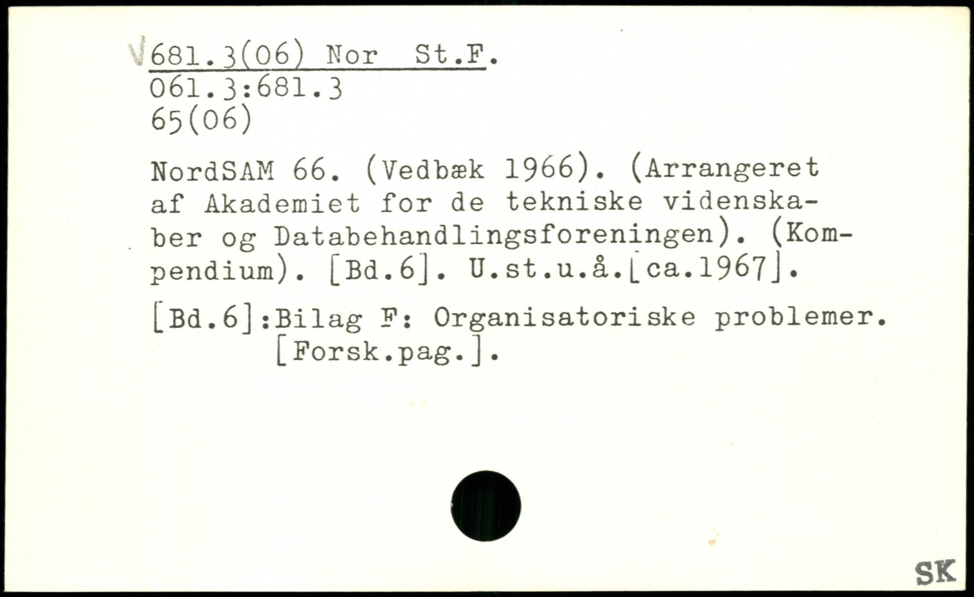 HordSAM 66. (VeStæk 1966). (Arrangeret af Akademiet for de tekniske videnskaber og Databehandlingsforeningen). (Kompendium). [