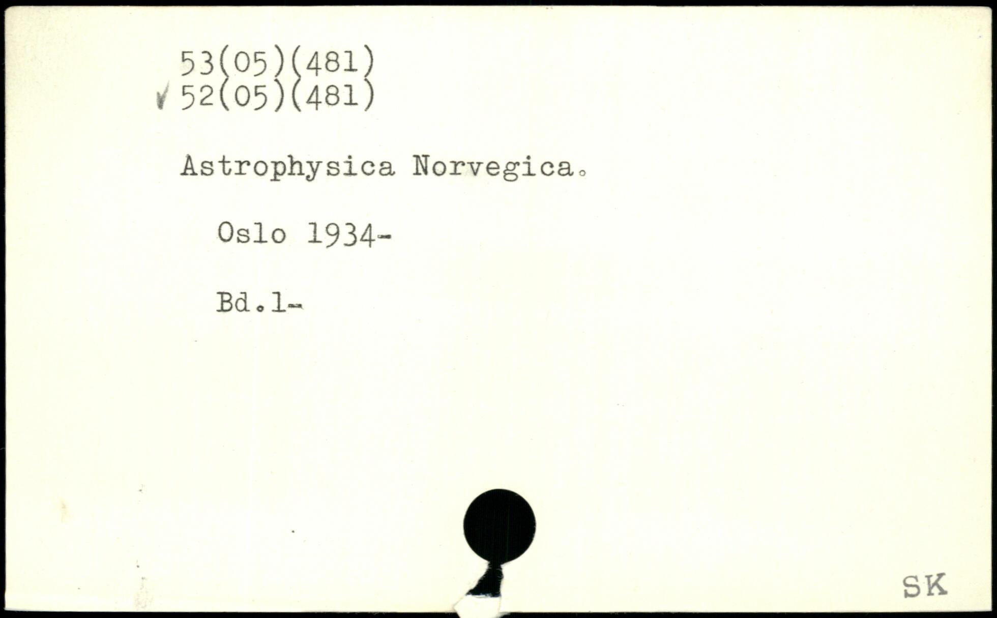 Astrophysica Norvegica, Oslo 1934- Bdo 1- ~SK