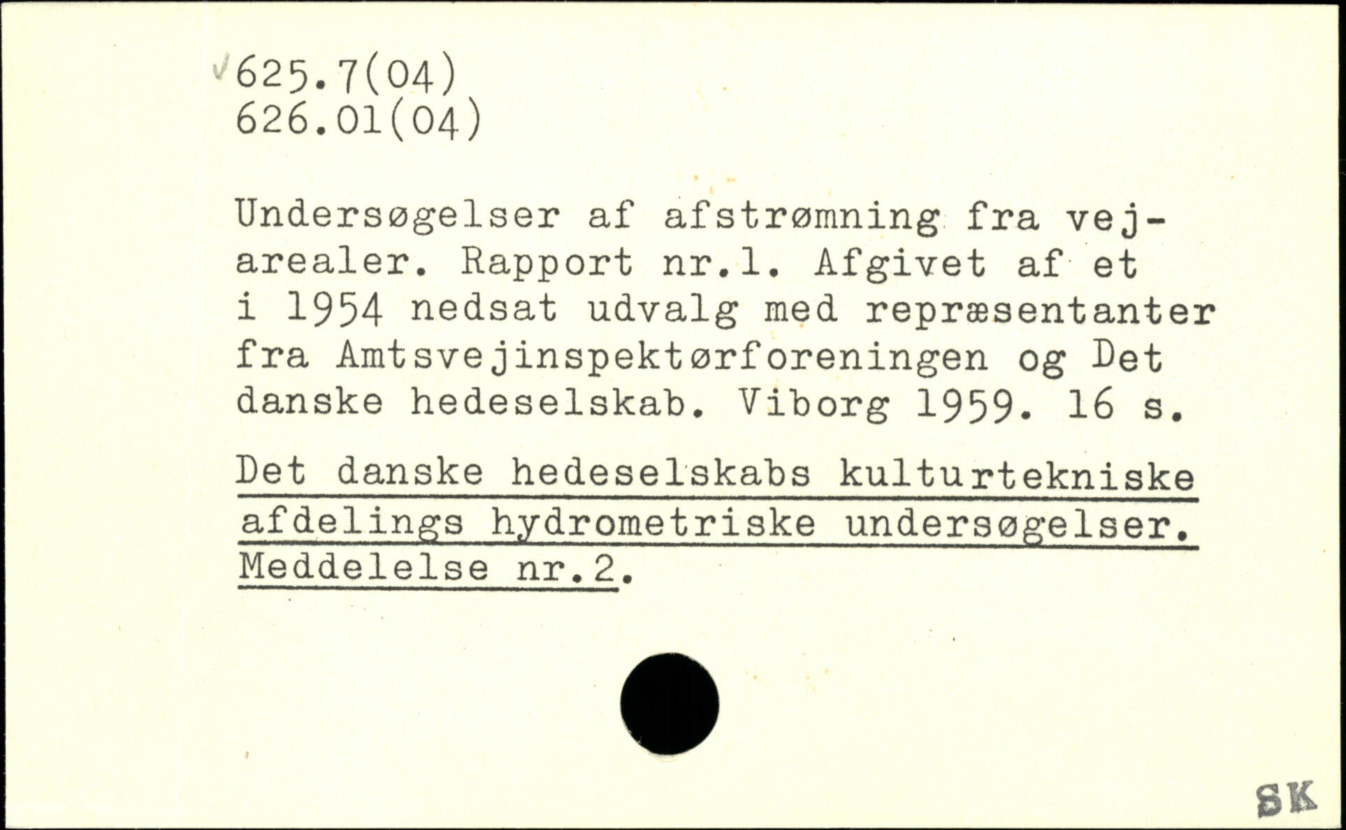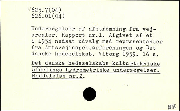 Undersøgelser af afstrømning fra vejarealer. Rapport nr.l. Afgivet af et i 1954 nedsat udvalg med repræsentanter fra Amtsvejinspektørforeningen og Det danske hedeselskab. Viborg 1959