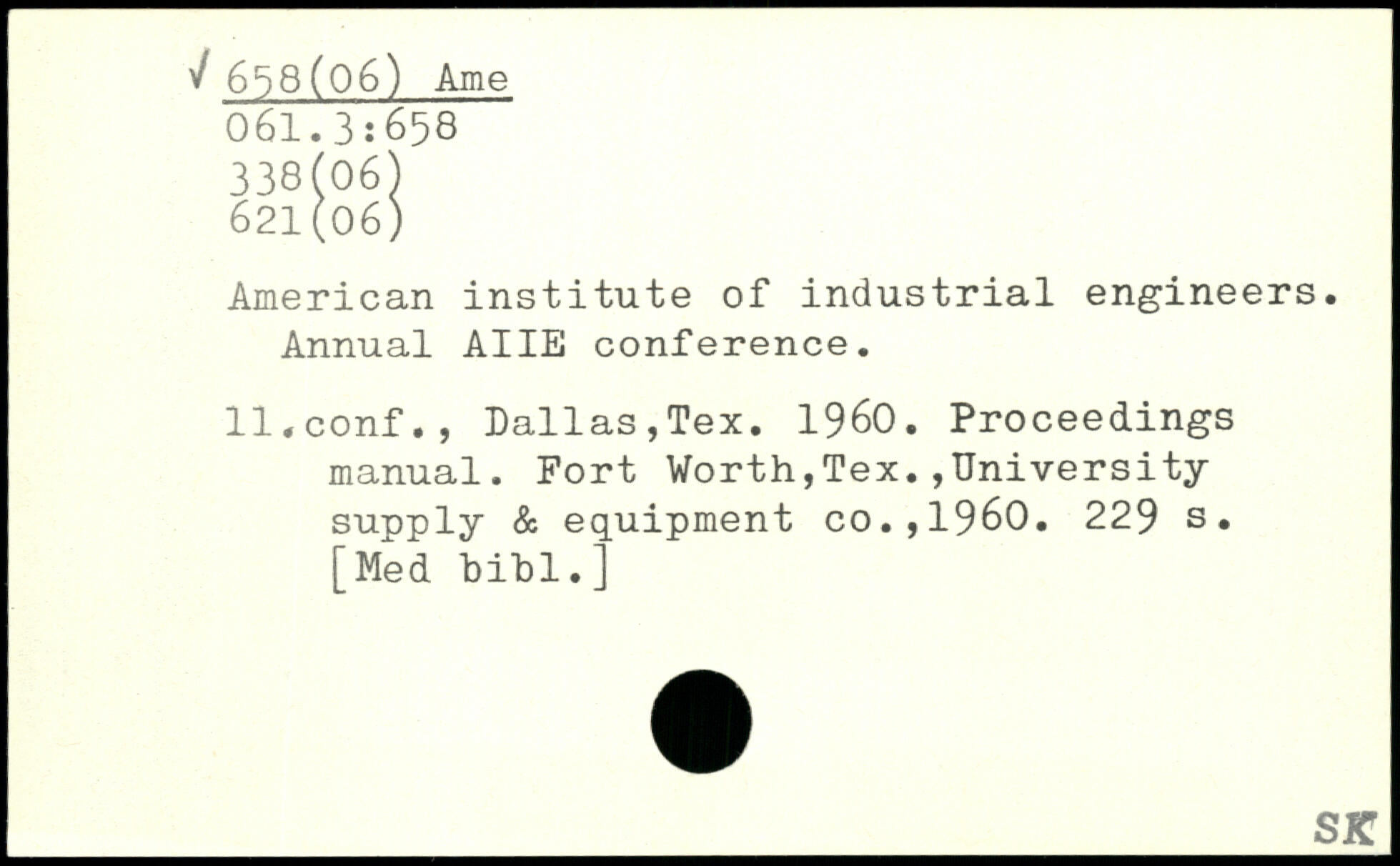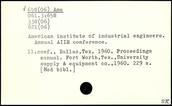 American institute of industrial engineers. Annual AIIE conference. ll.conf., Dallas,Tex. 1960. Proceedings manual.