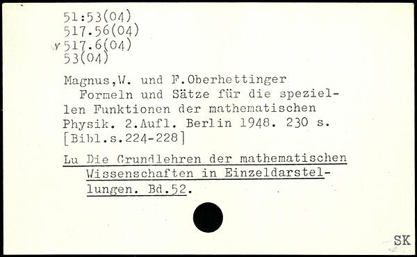 Formeln und Sätze für die speziellen Funktionen der mathematischen Physik.