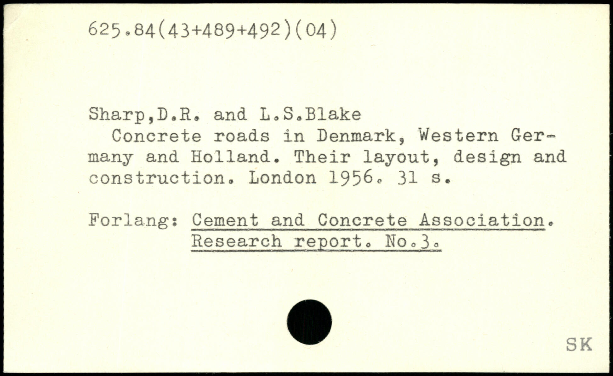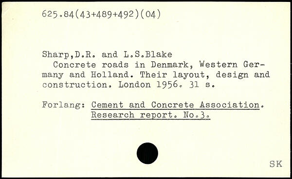 Sharp,D.R, and L.S.Blake Concrete roads in Denmark, Western Germany and Holland. Their layout, design and construction.