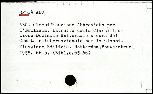 ABC ABC. Classificazione Abbreviata per l'Edilizia. Estratto dalla Classifica-zione Decimale Universale a cura del Comitato Internazionale per la Classi-fisazione Edilizia.
