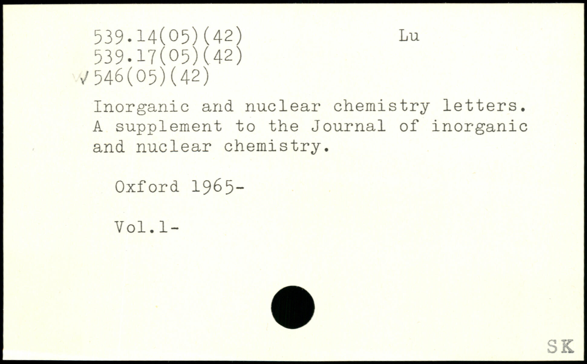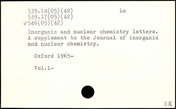 Inorganic and nuclear chemistry letters. A supplement to the Journal of inorganic and nuclear chemistry.