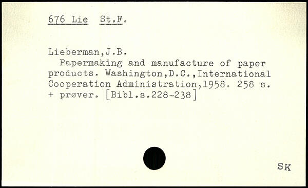 Papermaking and manufacture of paper products, Washington,D,C.,International Cooperation Administration?1958-
