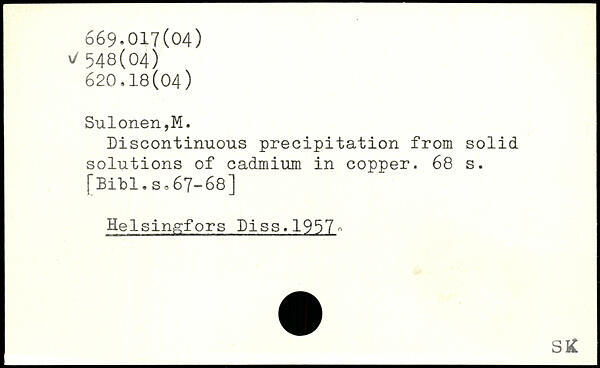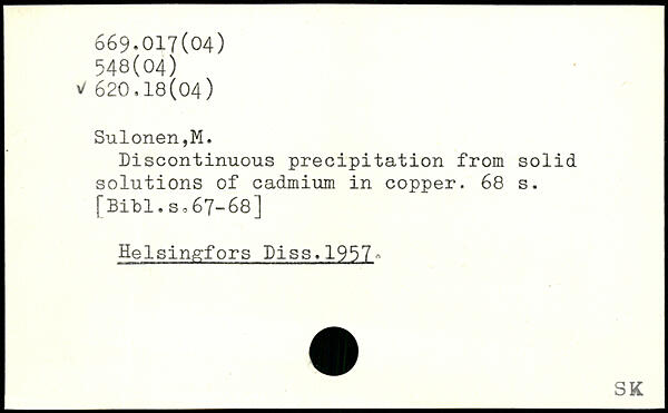 Discontinuous precipitation from solid solutions of cadmium in copper.