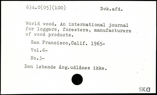 World wood. An international journal for loggers, foresters, manufacturers of wood products. San Francisco,Calif. 1965-