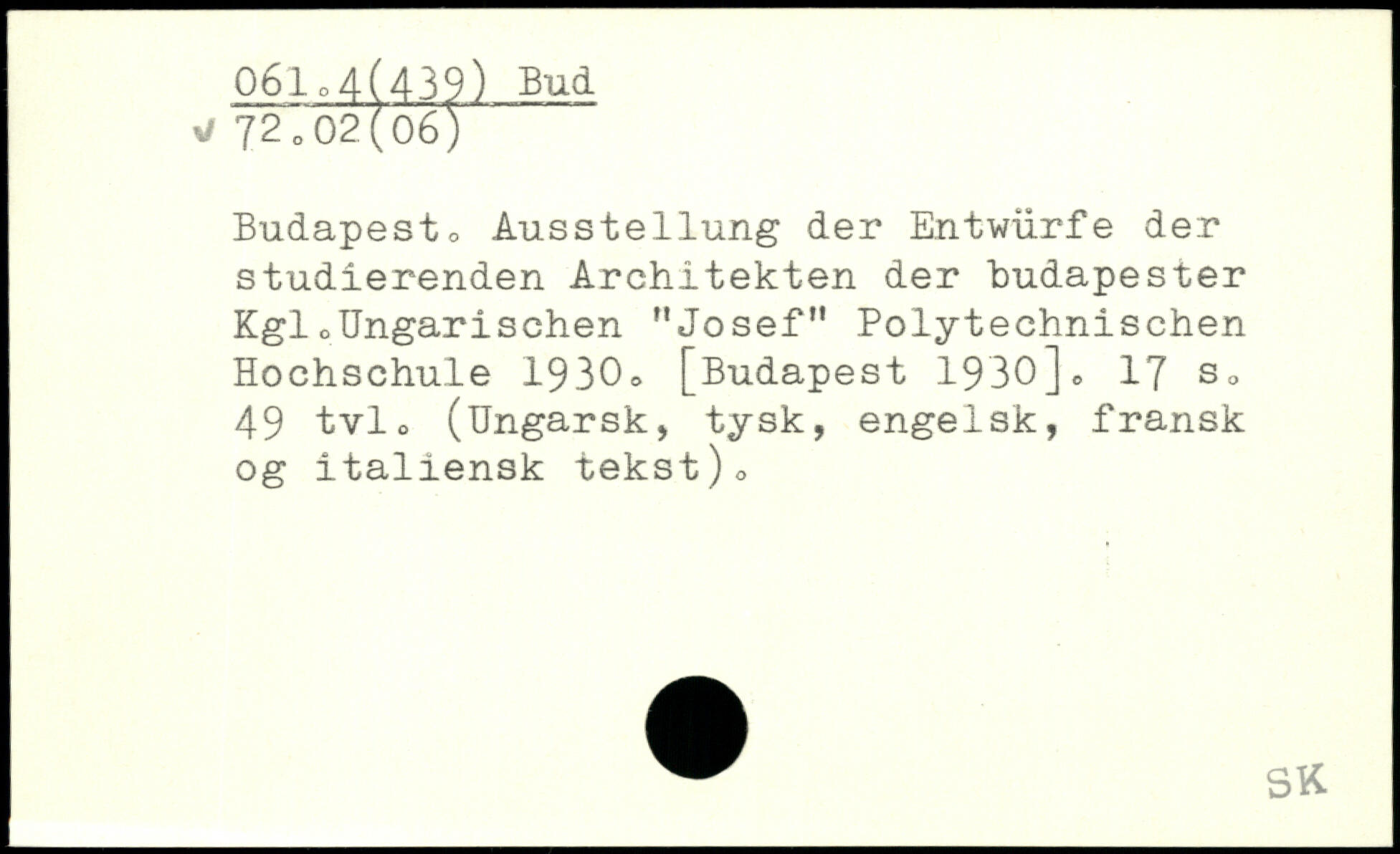Budapest, Ausstellung der Entwürfe der studierenden Architekten der hudapester Kgl o Ungarischen "Josef" Polytechnischen Hochschule 1930