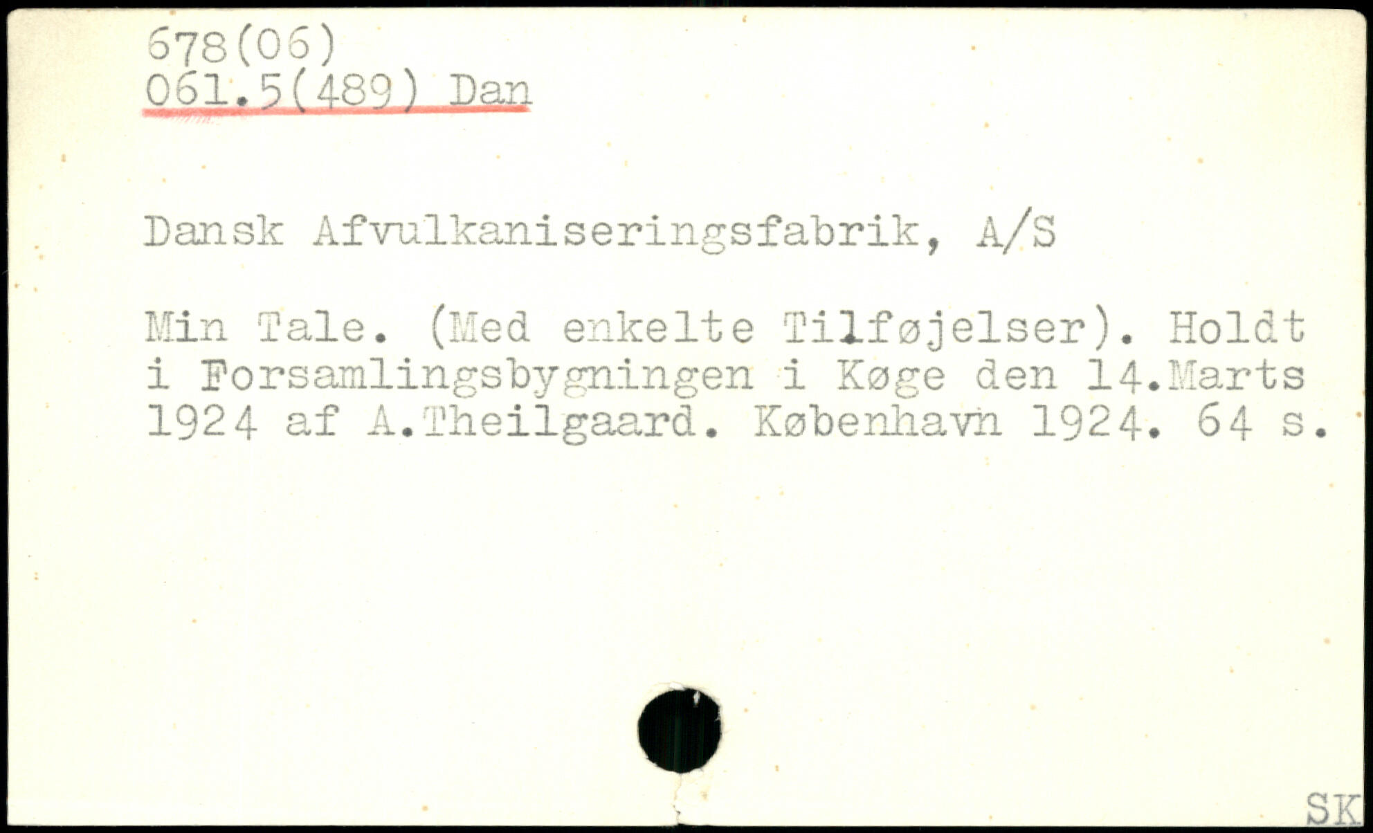 Dansk Afvulkaniseringsfabrik, A/S Min Dale. (Med enkelte Tilføjelser). Holdt i Forsamlingsbygningen i Køge den 14.Marts 1924 af A.Theilgaard.
