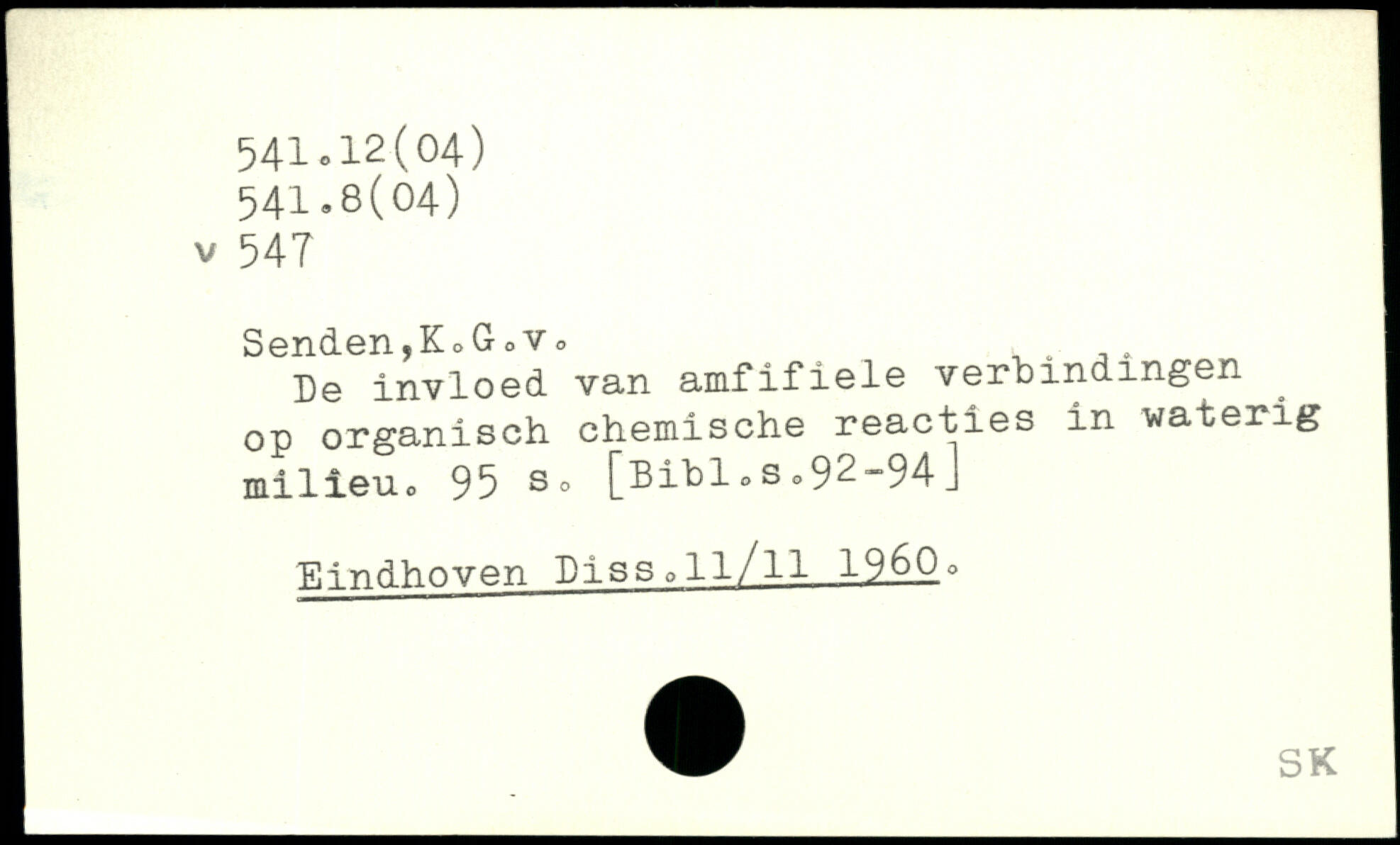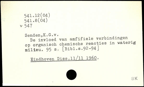 Senden,KoG0v0 ,. ,, De invloed van amfifiele yerbindmgen op organisch chemische reacties in waterig milieuo