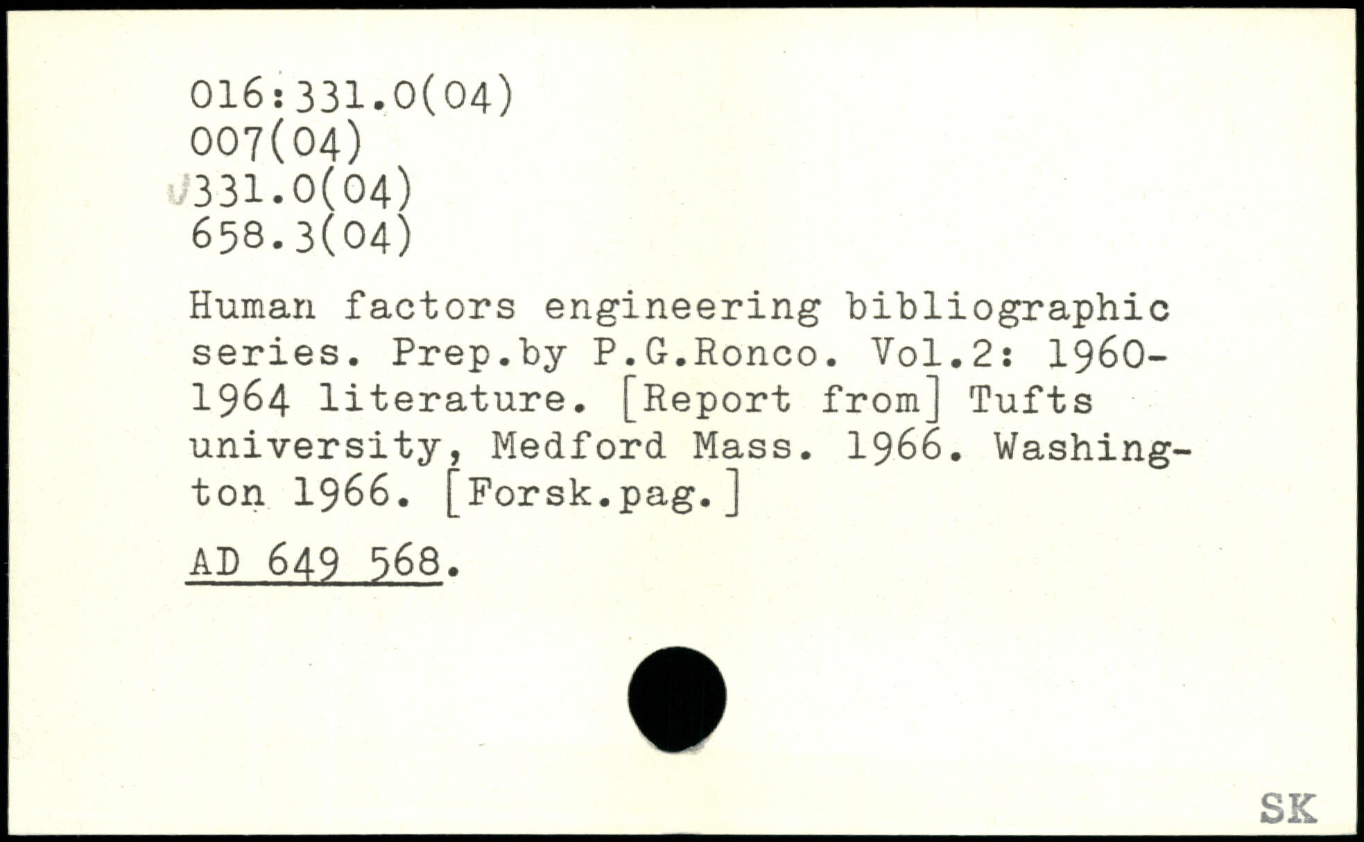 Human factors engineering bibliographic series. Prep.by P.G.Ronco.