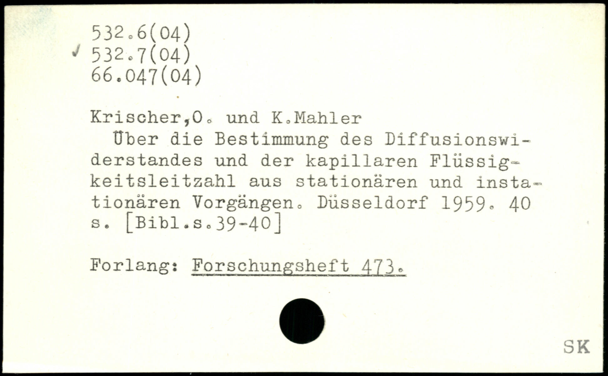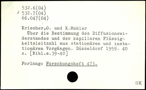 Krischer,00 und K,Mahler Uber die Bestimmung des Diffusionswiderstandes und der kapillaren Flüssig-keitsleitzahl aus stationären und instationären Vorgängen, Düsseldorf 1959
